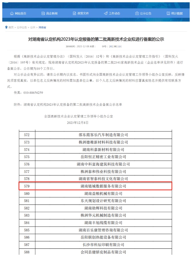 (子公司鏈城數(shù)據(jù)公司獲批國家級高新技術企業(yè))